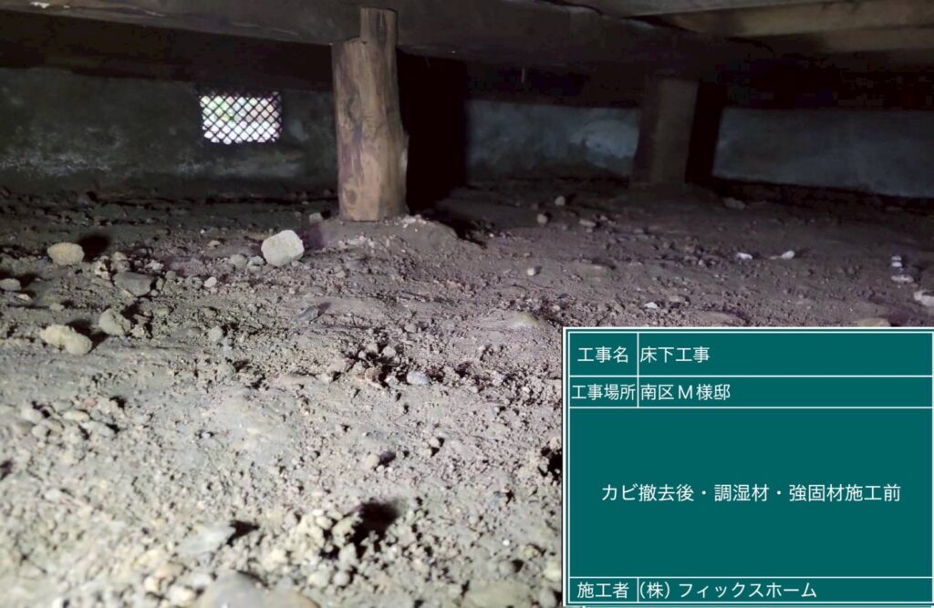 令和8年4月19日 床下耐震・調湿工事 南区M様邸 2026 4/26 床下カビ発生箇所 床下カビ撤去後 床下調湿材(KMK)・基礎強固材施工後 屋根 よかったらシェアしてね! URLをコピーしました! URLをコピーしました! 令和8年4月12日 屋根漆喰工事 津島市O様邸